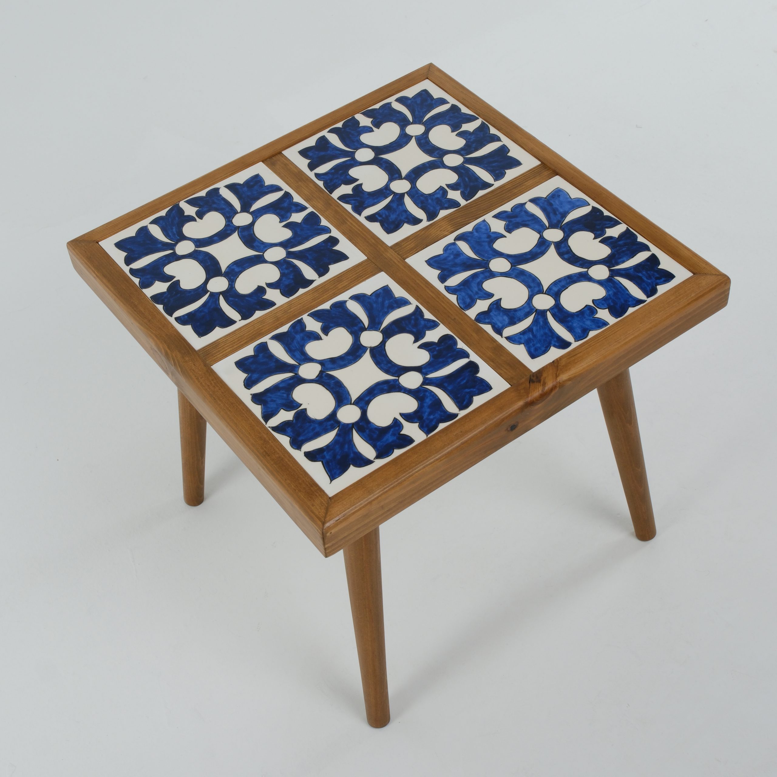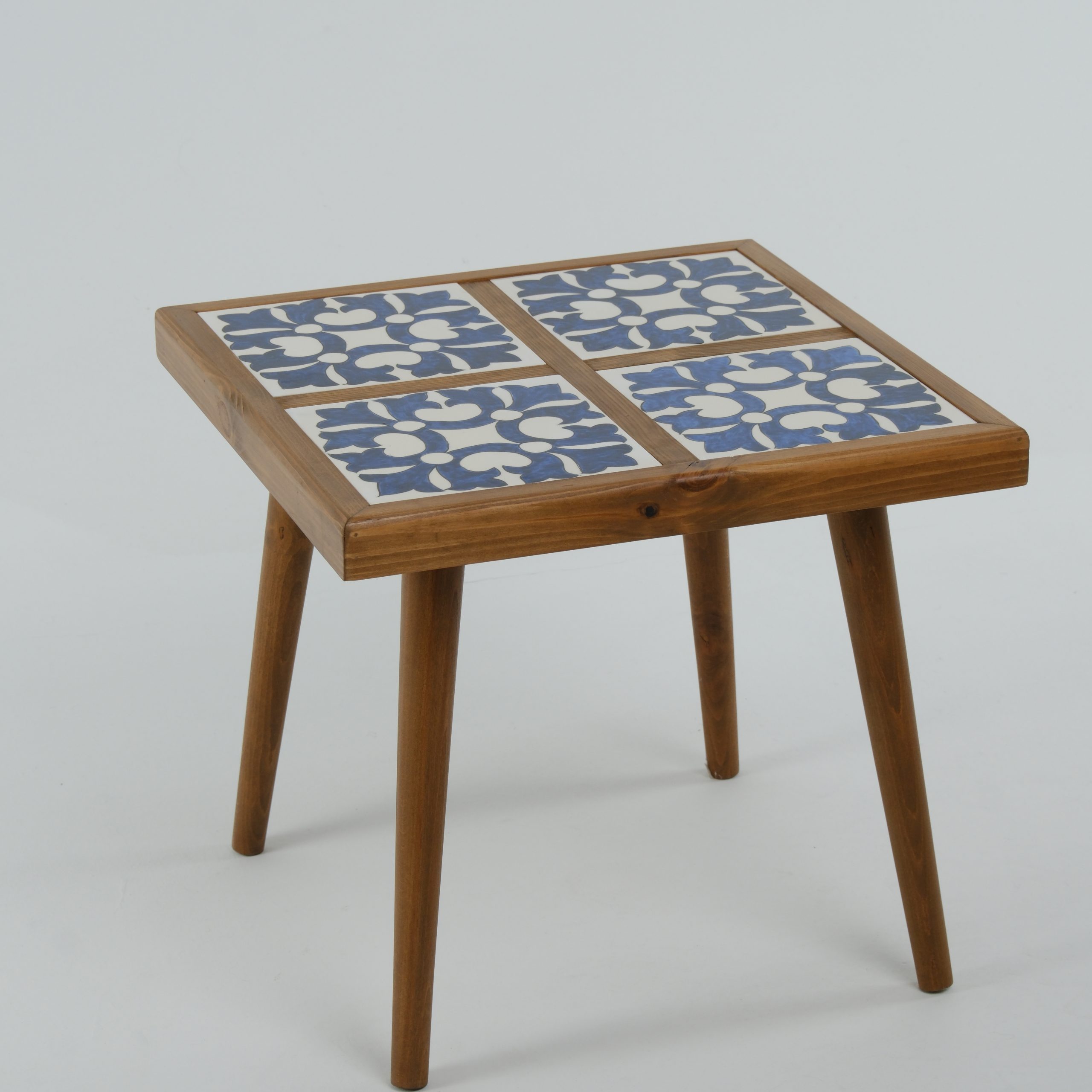 🔷 El İşlemeli Seramik Karolu Dekoratif Ahşap Sehpa